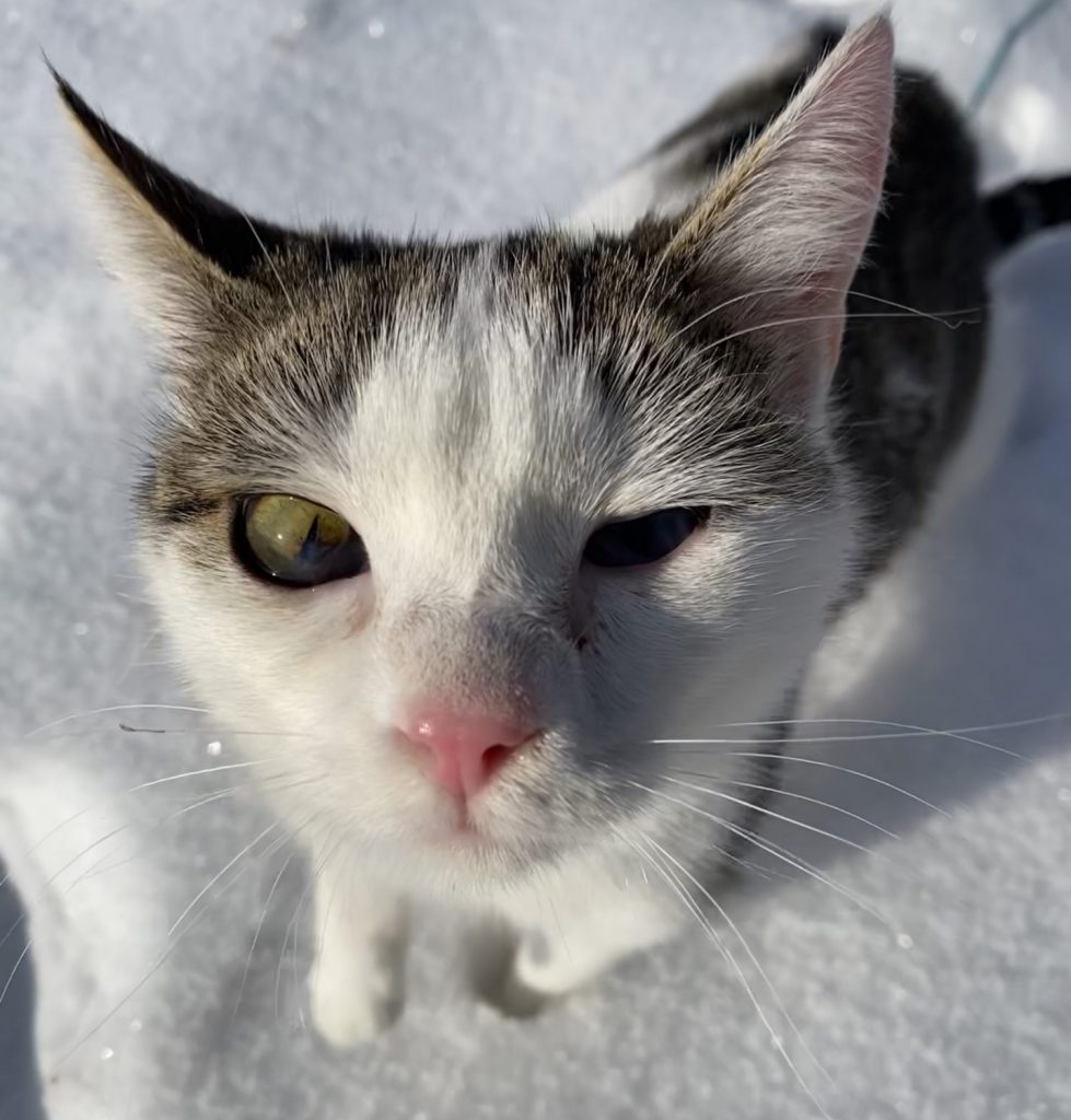 Mittlerweile handhaben wir einen Schub so: Wir haben immer eine Notfallpackung Virgan im Haus (gibt es nur beim Tierarzt oder auf Rezept). Ihr kommt also nicht umhin eure Katze sowieso dort vorzustellen und bitte macht dies auch! Alles andere wäre fahrlässig! Außerdem geben wir regelmäßig pflegende Augentropfen und für das verstopfte Näschen gibt es eine Nasendusche aus einer 0,9 – 1,0% Kochsalzlösung. Bei Bedarf hyaluron- oder dexpanthenolhaltige Nasensprays. Damit haben wir es geschafft, den Katzenschnupfen mit all seinen Abarten und Auswirkungen gut zurückzudrängen und ihnen ein annähernd normales Leben zu geben. Früh genug erkannt, lässt sich auch eine schwere Entzündung des Auges vermeiden.