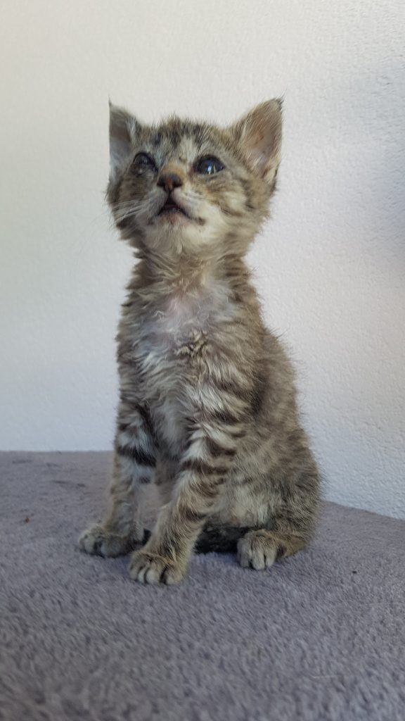 Wie ich mir das vorstellte, als wir die beiden Piraten Hilde und Balu bei uns aufnahmen? Die beiden haben von Geburt an Katzenschnupfen. Da dieser ein Infektionskomplex aus verschiedenen Erregern – diverser Bakterien und aber auch Viren, wie dem Felinen Herpesvirus, ist – sind sie davon stark beeinträchtigt: Bei erwachsenen Katzen macht sich der Katzenschnupfen oft nur durch „Niesen“ und Erkältungssymptome bemerkbar. Nicht bei Katzenkindern. Und so waren diese kleinen Rabauken kaum auf der Welt schon vom Leben gezeichnet: Die Augen beschädigt oder amputiert, starke Sehbehinderungen, Niesen und Atemwegsprobleme, chronische Sinusitis (Nebenhöhlenentzündung) und etwas arg im Wachstum hinterher. Der Haustierarzt, dem ich die beiden im Alter von 3 Monaten vorstellte meinte gar, es seien „Mickerlinge“. Belassen wir es bei „zarten Kätzchen“.