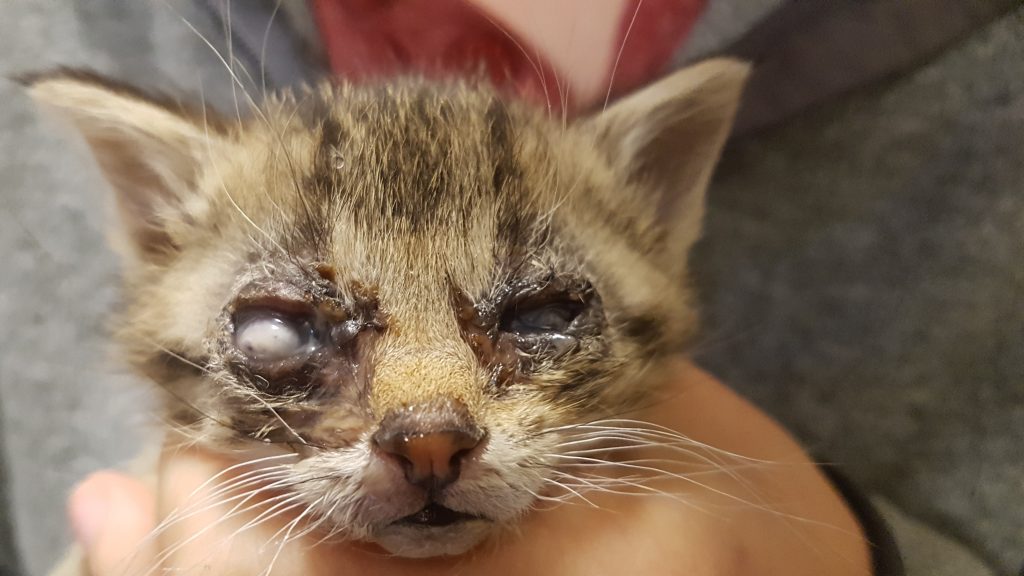 Okay, sie sehen nicht so gut. Aber der Rest wird sich geben, dachte ich mir. Vielleicht niesen sie ab und an. Und ja, man wird darauf acht geben müssen, dass kein „Herpesschub“ kommt. Denn einmal mit dem Herpesvirus infiziert, bleibt die Katze ein Leben lang Träger und in besonderen Situationen wie zum Beispiel Stress, schlechtem Allgemeinzustand, Alter, Krankheit, kann die Infektion wieder erneut ausbrechen. Ähnlich dem menschlichen Herpesvirus. Nur dass es eben keine Bläschen an der Lippe gibt, sondern ein regelrechtes „Matschauge“, infektiös, blutig und unbehandelt durchaus in Gefahr zerstört zu werden. Aber, so mein Glaube, sie werden es ruhig und stressarm haben, wir werden das hinbekommen.