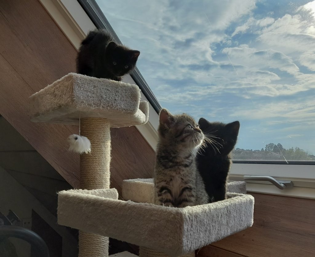 Und als letzte Besucher unserer Pflegestelle vor der Babypause beherbergten wir vier getigerte Katzendamen, die nach einer Beschlagnahmung durch das Veterinäramt vermittlungsfertig gemacht wurden.